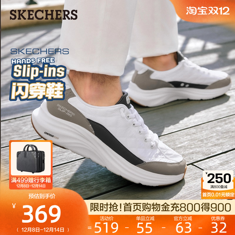 【梁朝伟同款】斯凯奇闪穿鞋秋冬款男鞋一脚蹬宽楦云感鞋休闲鞋