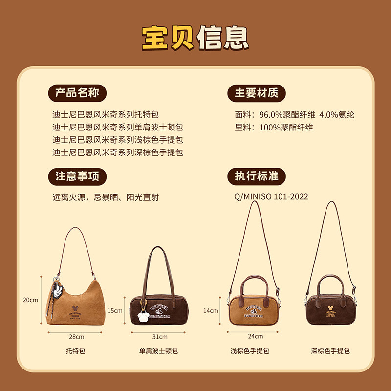 MINISO名创优品迪士尼巴恩风米奇系列手提包波士顿包托特包