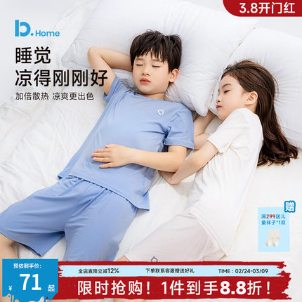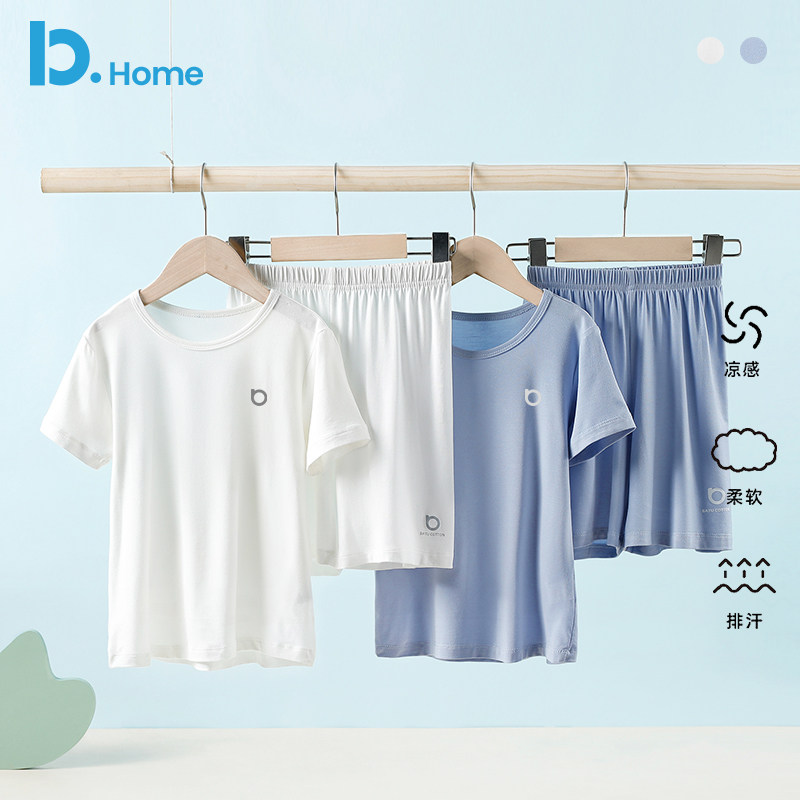 儿童莫代尔睡衣夏季薄款男童女童短袖排汗凉感透气家居空调服套装