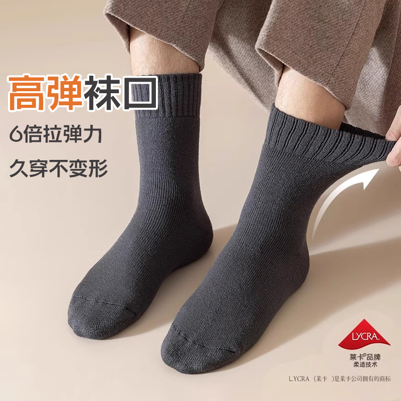 厚羊绒袜子男秋冬季加绒加厚中筒袜睡眠地板袜男士防臭保暖羊毛袜