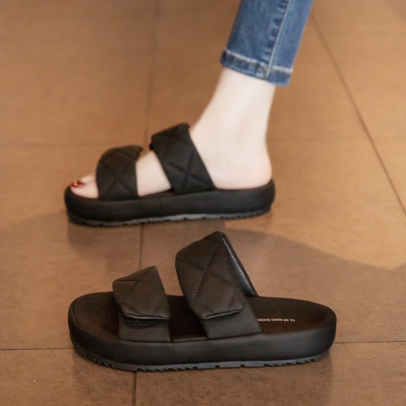 凉拖鞋女夏季外穿2025新款踩屎感厚底休闲沙滩凉鞋时尚孕妇一字拖