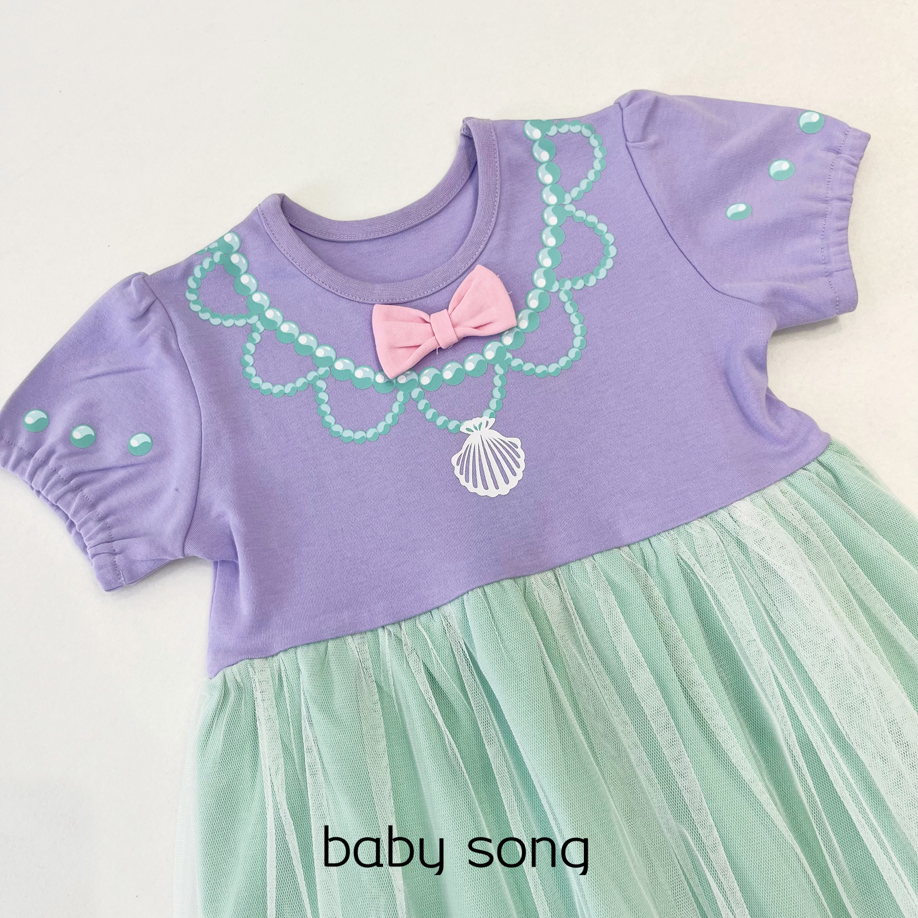 日单90-140女宝儿童夏季蝴蝶结公主系列网纱泡泡短袖连衣裙