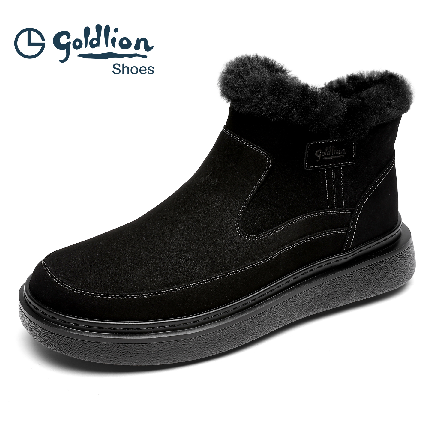Goldlion男鞋 2025冬季新款保暖加绒雪地靴免系休闲增高防滑皮靴