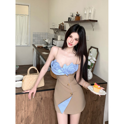 【现货】灰尘邓邓 设计感吊带连衣裙女早秋高级感衬衫裙包臀裙子
