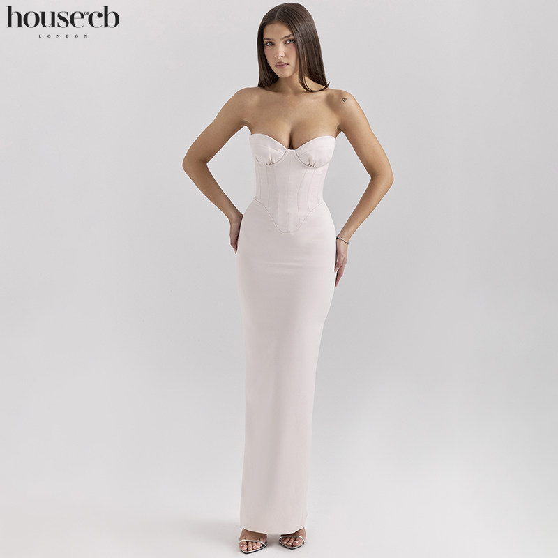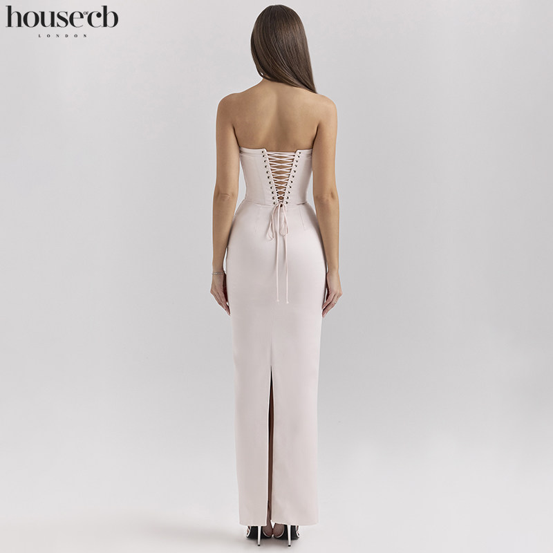 House of CB 显身材优雅高贵腮红色缎面超长连衣裙Valeria