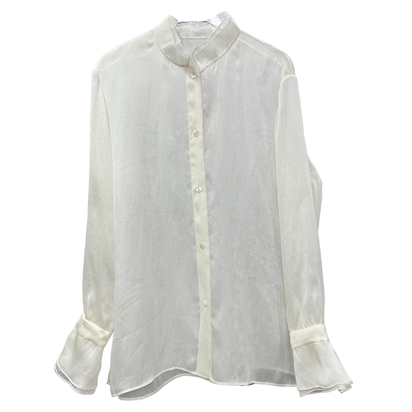 双层立领真丝欧根纱长袖衬衫上衣