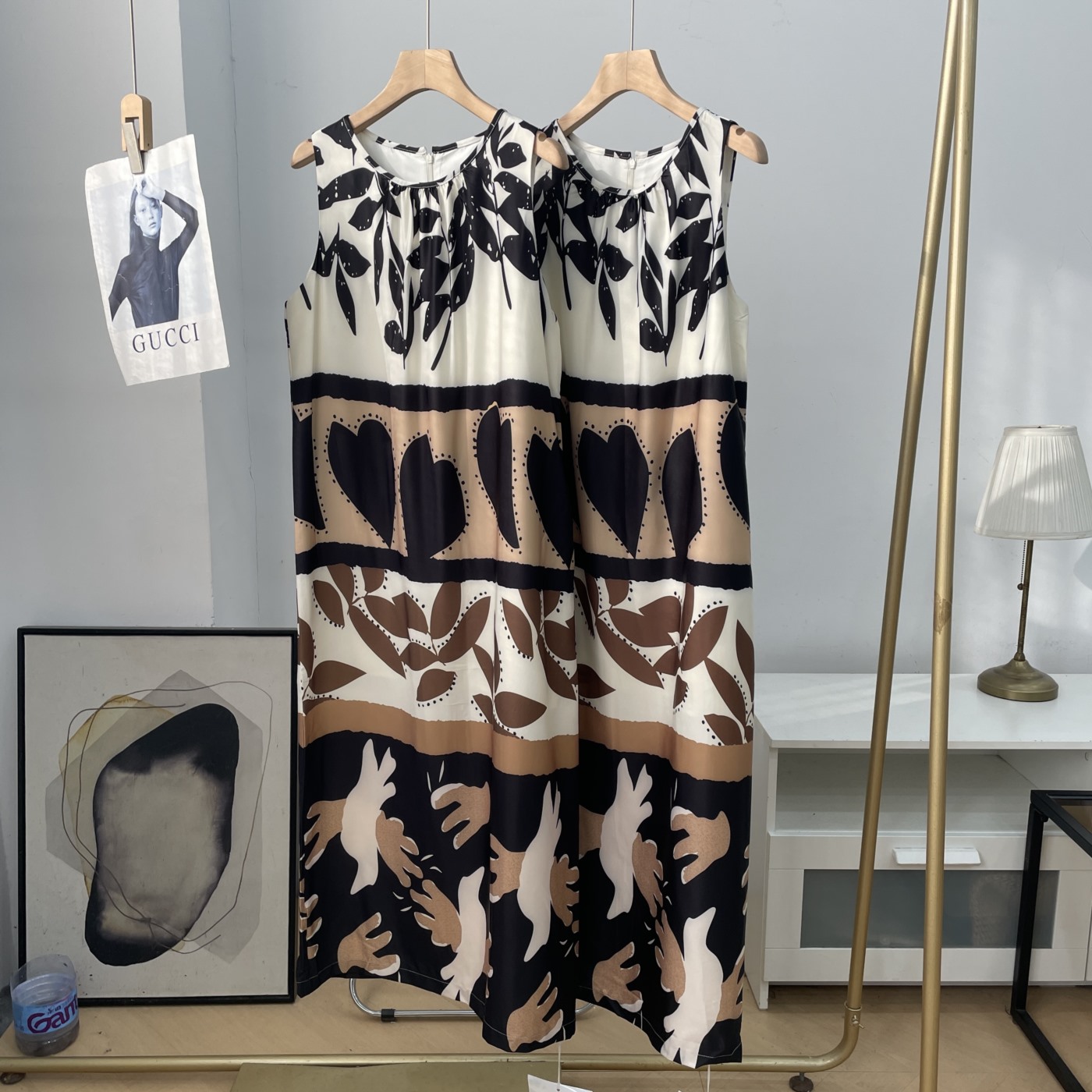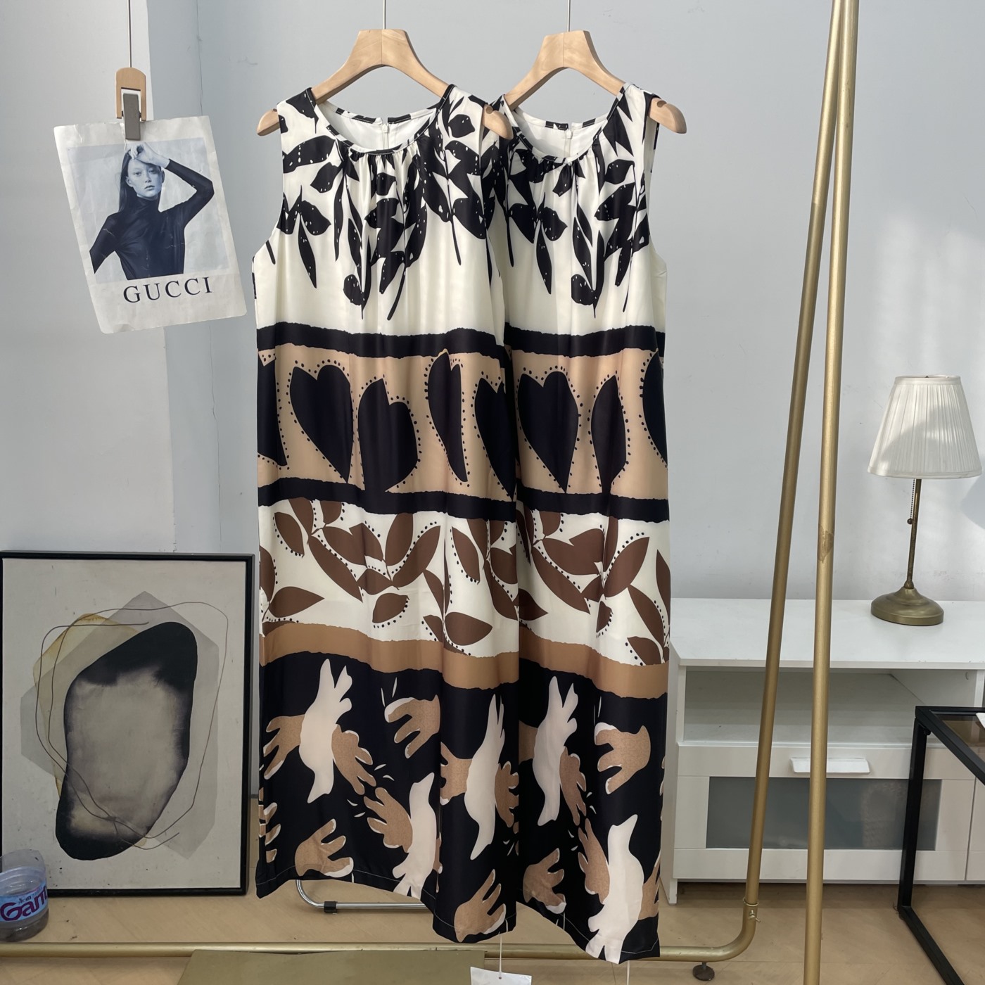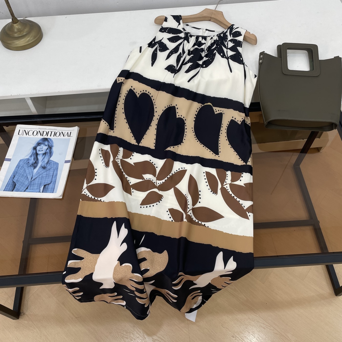 连衣裙2025秋季新款背心无袖印花休闲小众设计长裙I#16