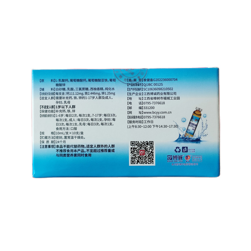 钙铁锌口服液儿童青少年孕妇补钙