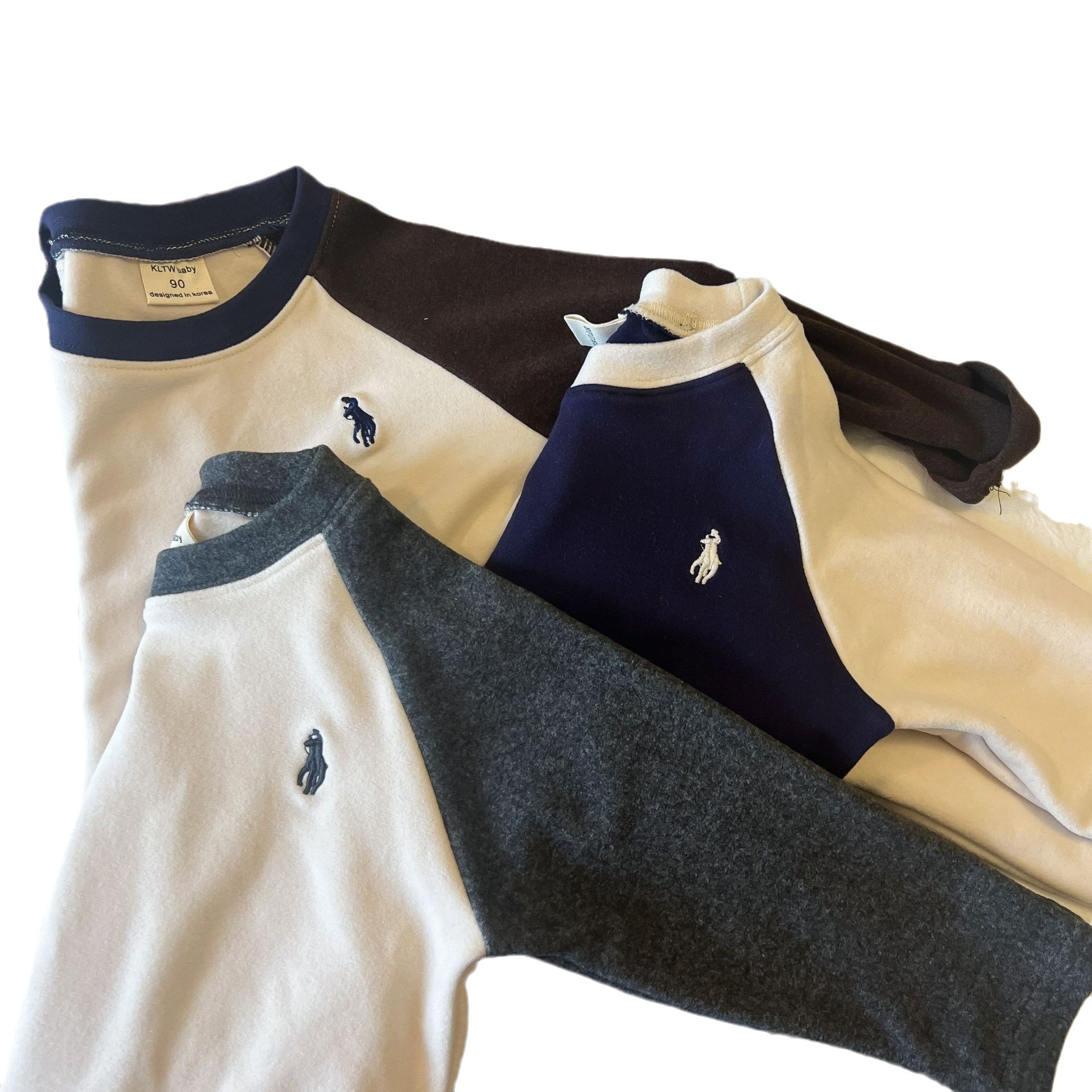 儿童秋冬加绒潮牌撞色T恤打底衫