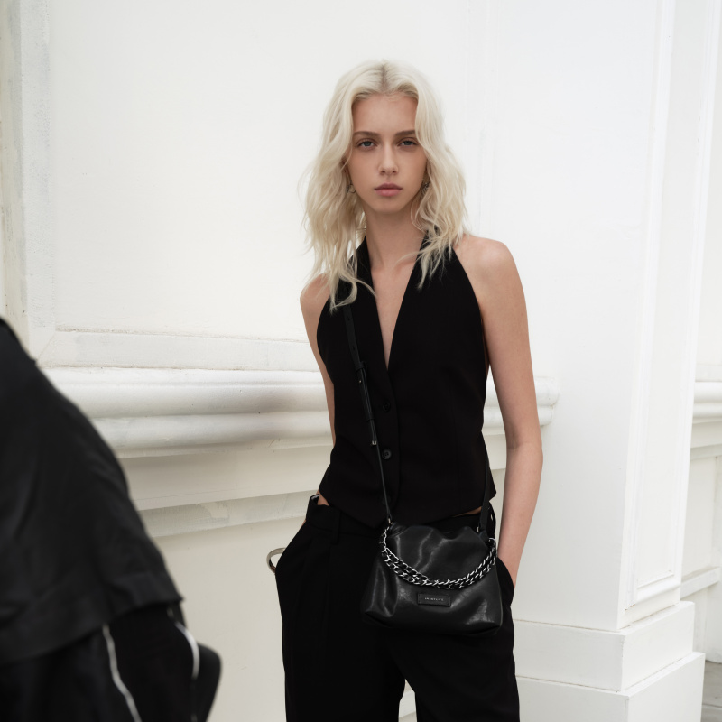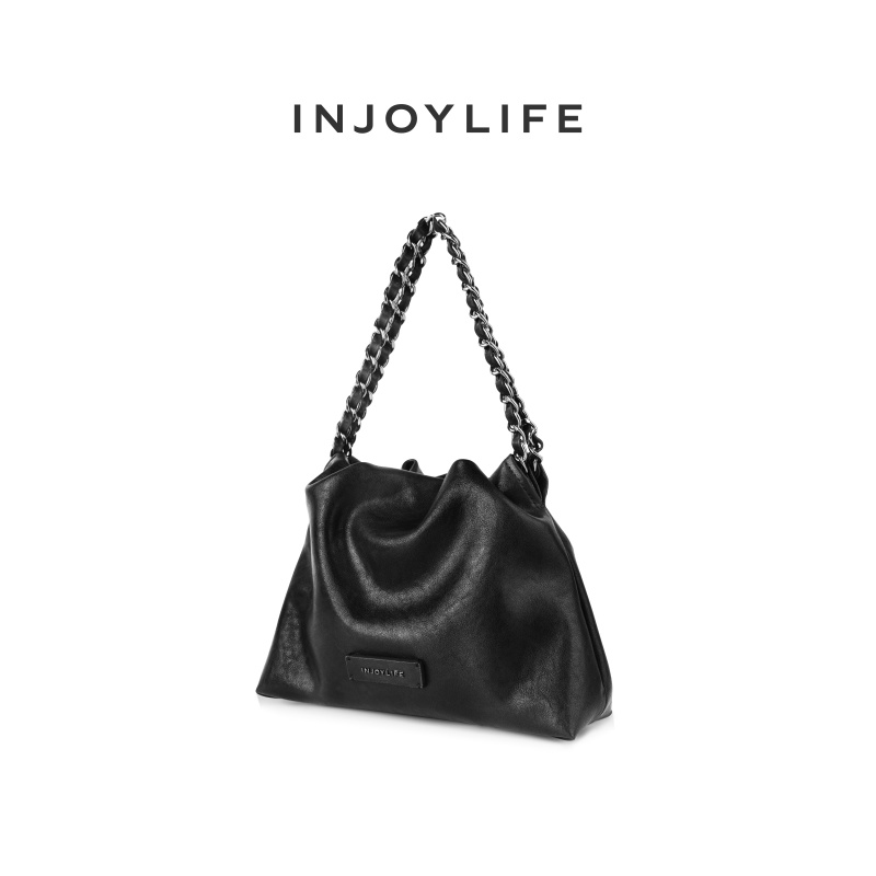 INJOYLIFE链条垃圾袋小号斜挎手提小包包黑色链条包褶皱云朵包