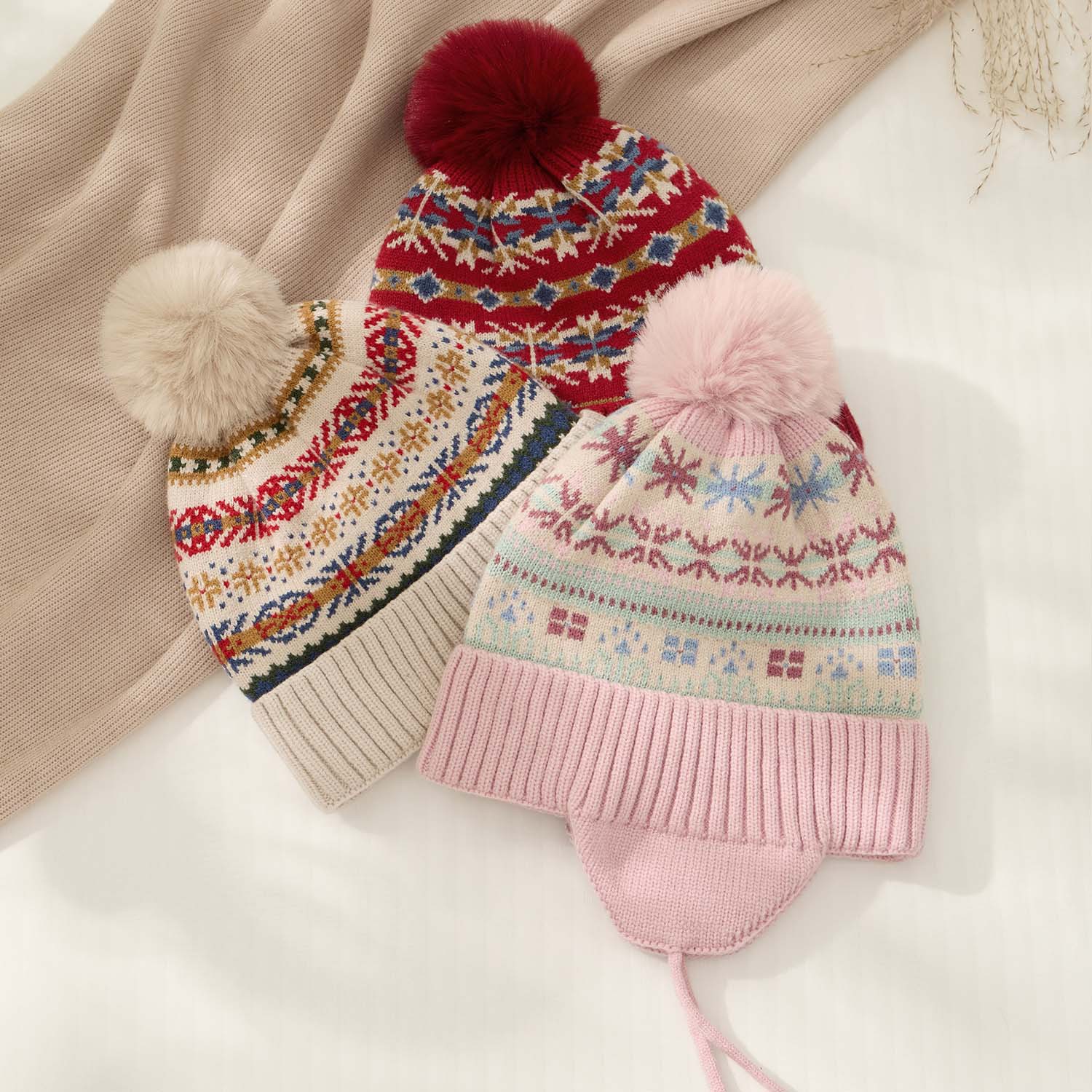 【费尔岛提花】尼多熊2025儿童毛线针织护耳帽秋冬款男宝女宝帽子