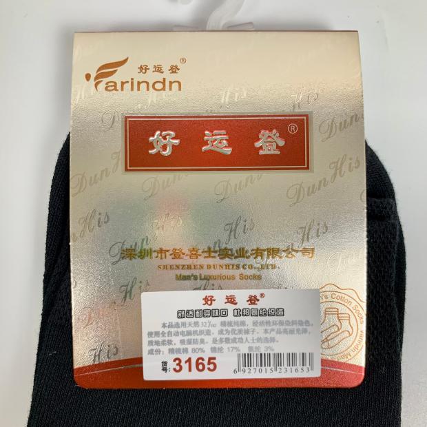 好运登秋冬男士袜子中筒袜精梳棉防臭吸汗船袜运动休闲纯色长筒袜