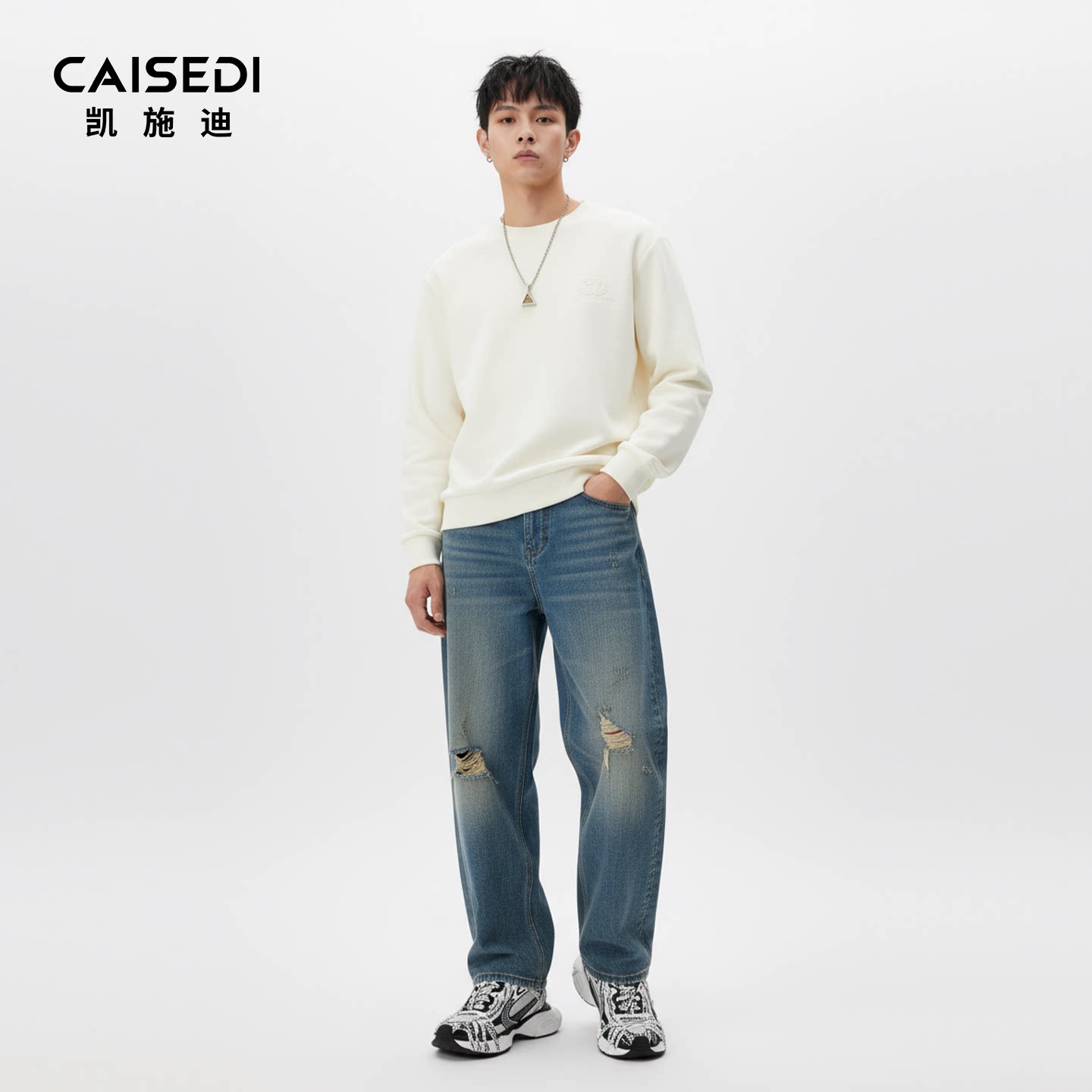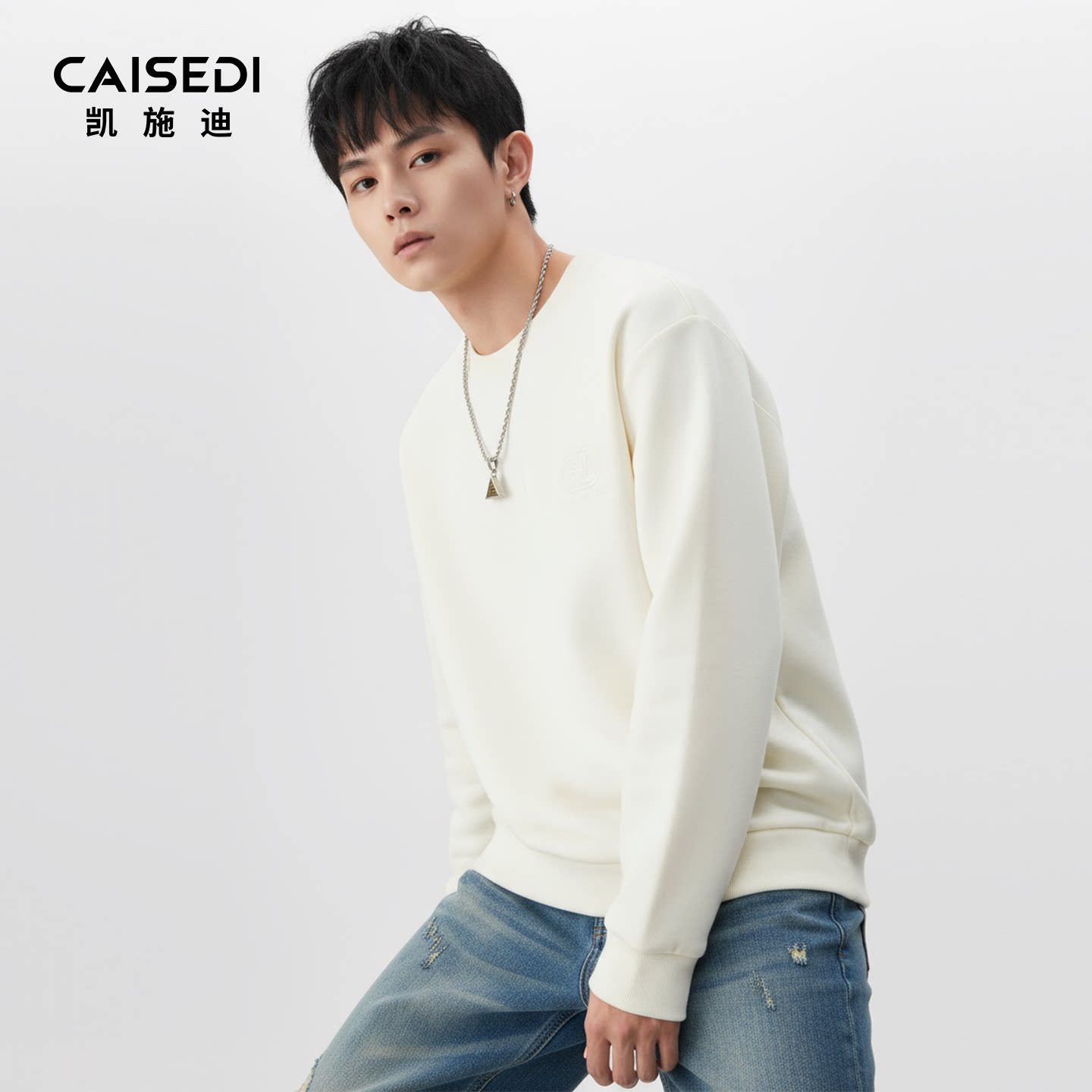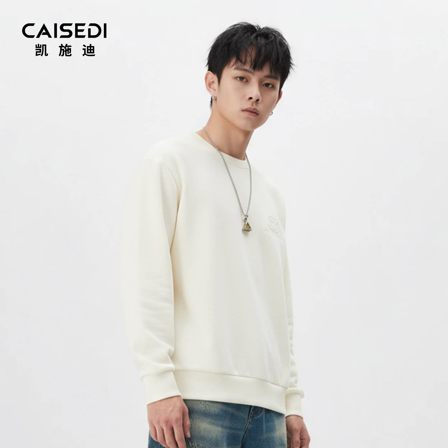 凯施迪圆领绣花长袖打底衫卫衣男