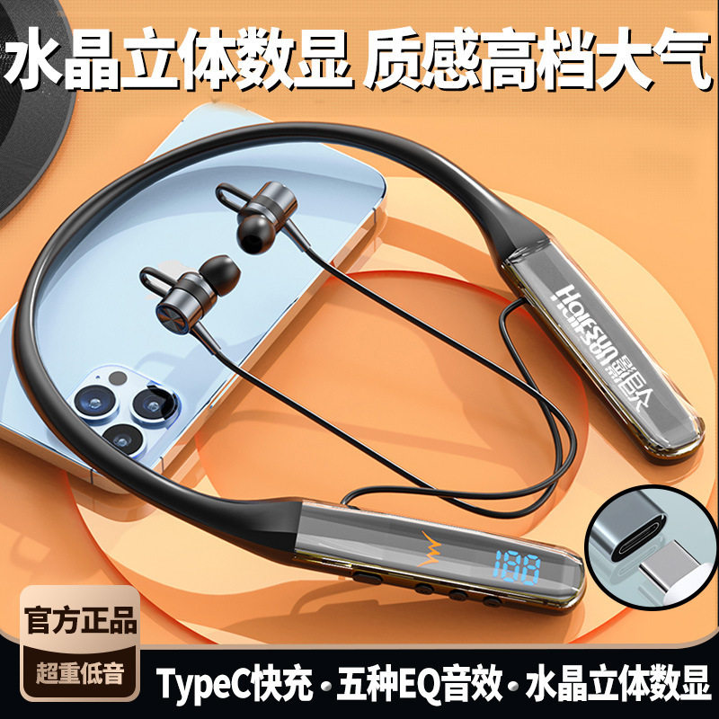 一拖二影巨人颈挂式蓝牙耳机水晶数显长待机女运动电竞游戏耳机