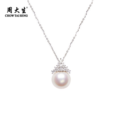 周大生冠冕珍珠项链近圆强光珍珠颈饰经典精致时尚大吊坠12-13mm