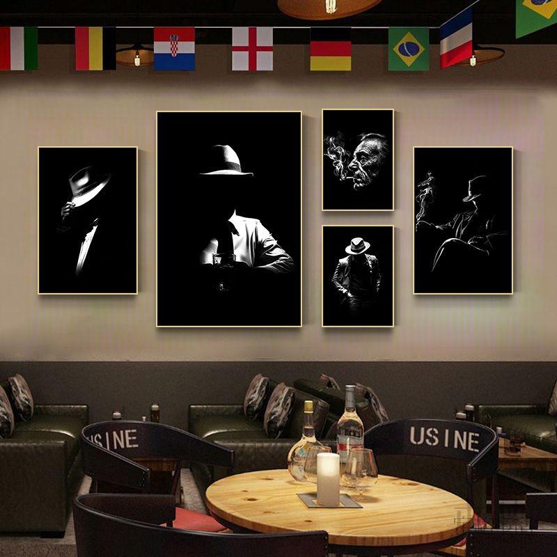 雪茄装饰画美式复古威士忌吧挂画男士服装店私人定制西装店壁画