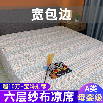 六层纯棉纱布软凉席单人双人学生a类床盖加厚防滑床单6层棉纱炕单