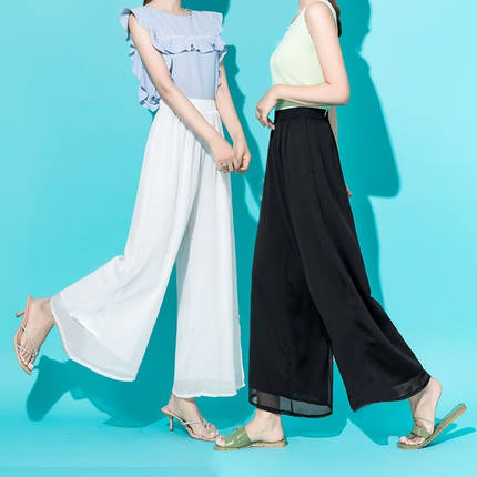 冰丝雪纺阔腿裙裤女薄款九分休闲