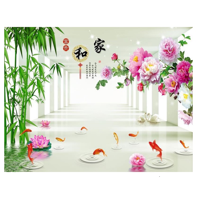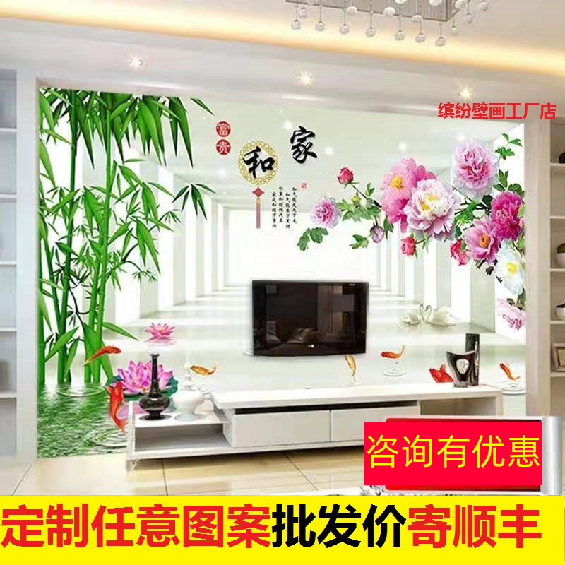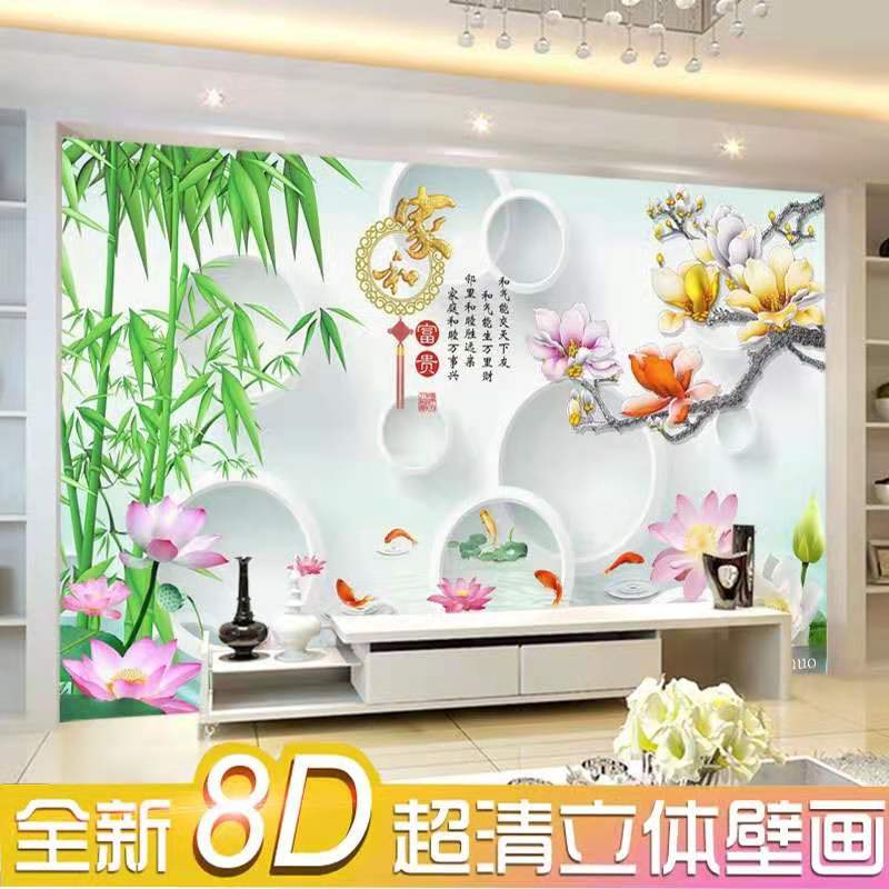 新中式电视背景墙壁纸现代简约5d墙布8d立体墙纸18d壁画2021新款