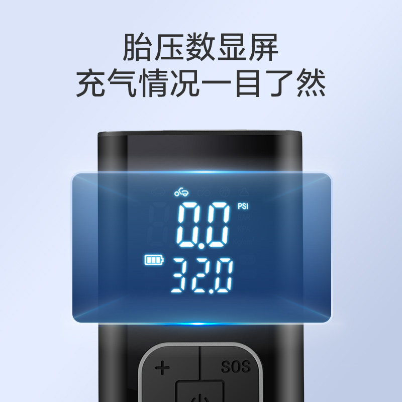 公牛车载充气泵汽车用打气泵便携无线电动轮胎带测胎压打气筒