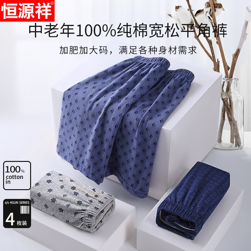 恒源祥中老年人内裤男士纯棉平角短裤头爸宽松加肥款大码四角高腰