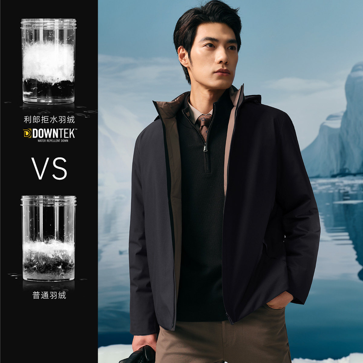 【多孔膜/拒水】利郎官方羽绒服男休闲连帽2025冬季轻薄保暖外套
