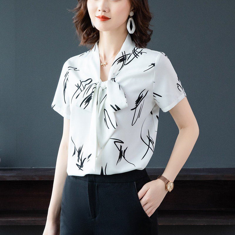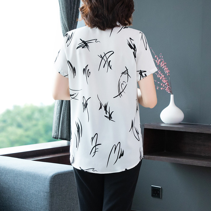 夏季大码短袖女衬衫胖mm加肥加大200斤宽松遮肚印花洋气雪纺上衣