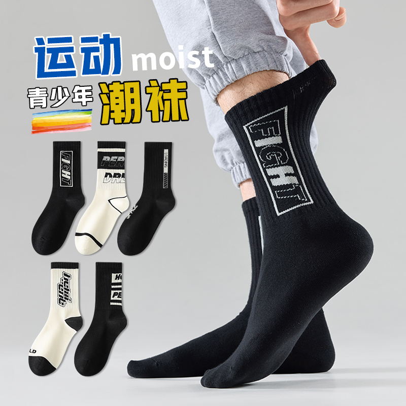 袜子青少年男学生纯棉防臭运动军训潮袜高中生篮球中筒新疆棉袜男