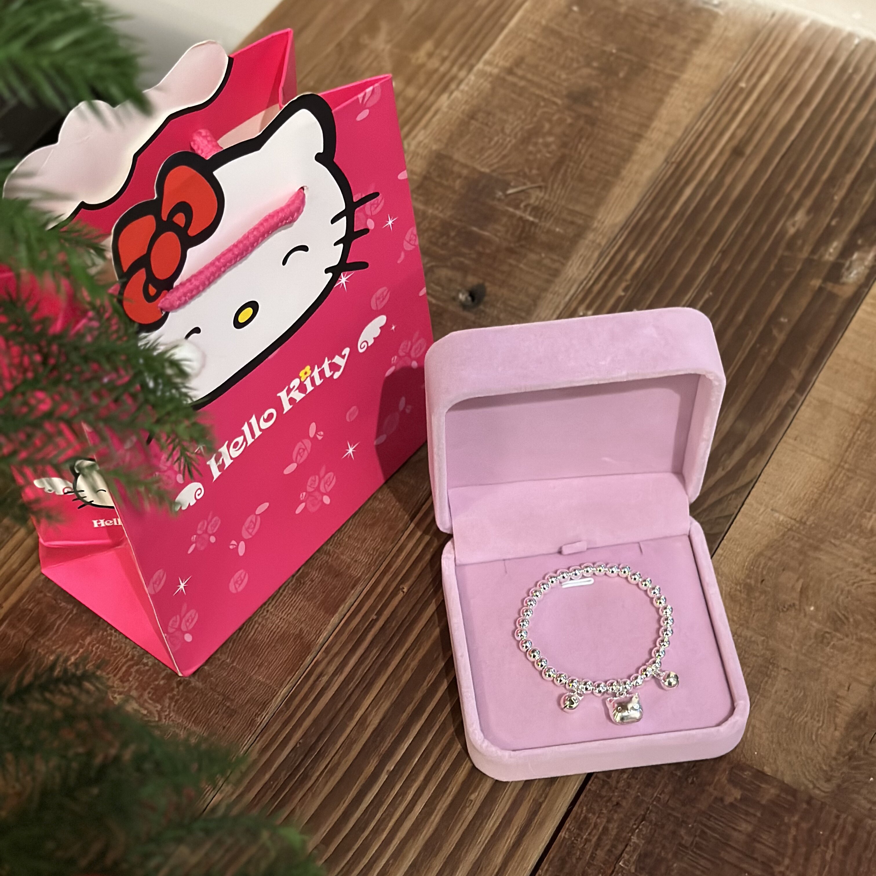 生日礼物Kitty猫银珠手链女纯银铃铛宝宝大人手环实心送女友手饰