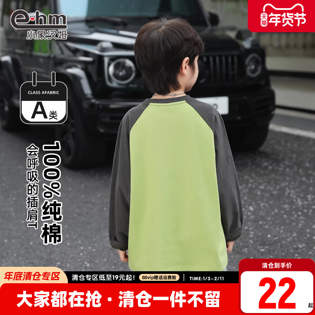 小象汉姆童装男童长袖T恤纯棉拼接款打底衫2026春装新款中大童A类
