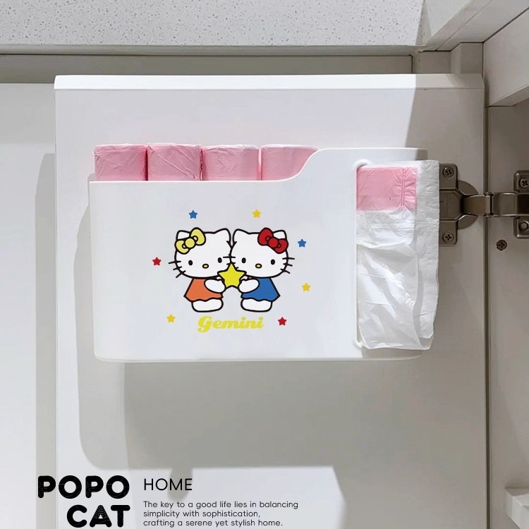 hellokitty垃圾袋收纳盒厨房免打孔塑料袋抽取盒大容量创意收纳架
