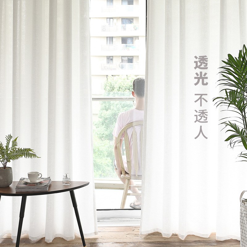 白纱窗帘c透光不透人魔术贴窗纱帘白色布料阳台半遮光飘窗简约纱