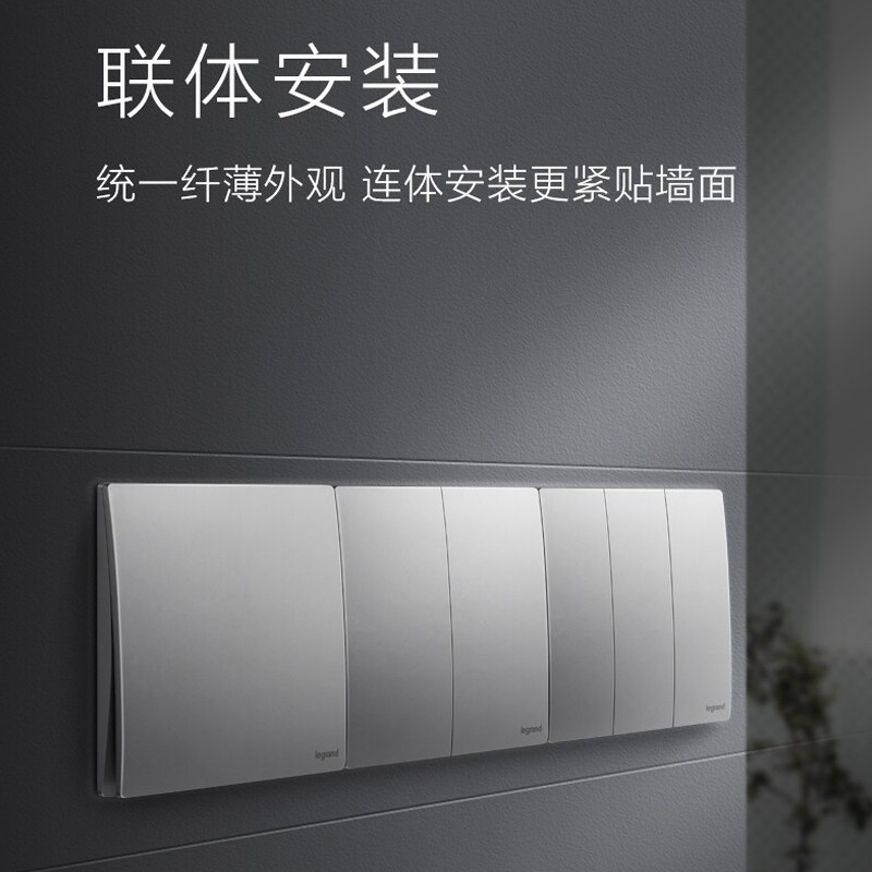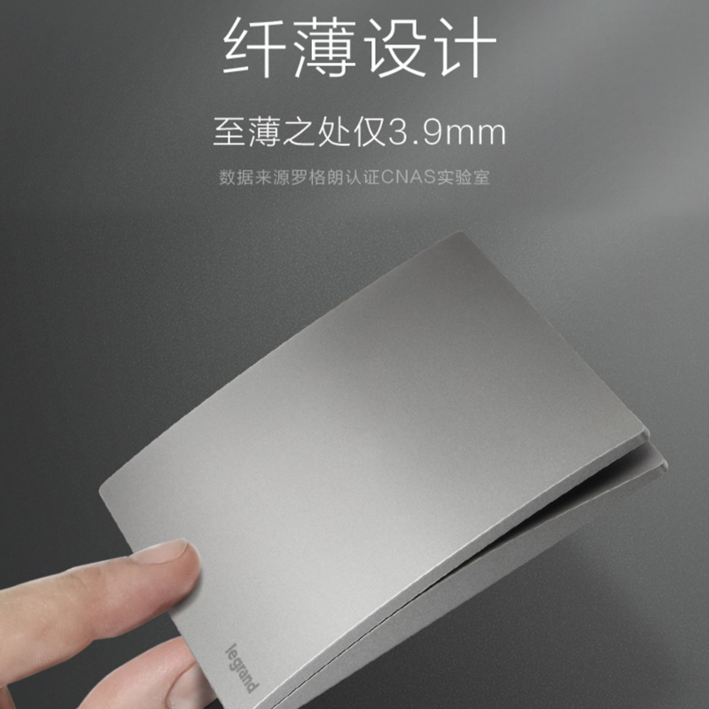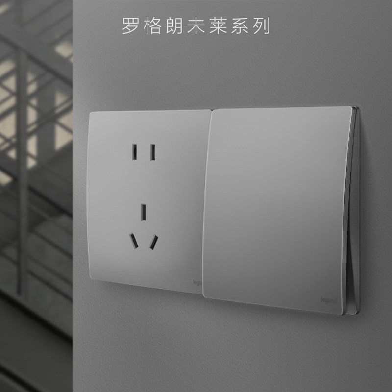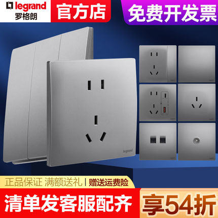 罗格朗开关插座面板哑光一开五孔带开关86型未莱深砂银16A空调插