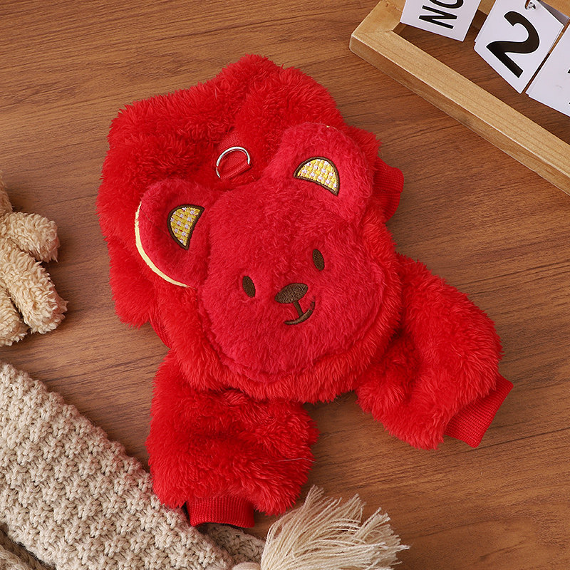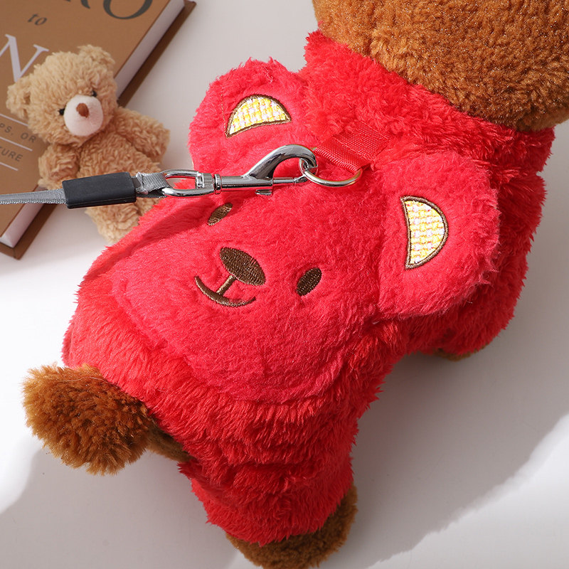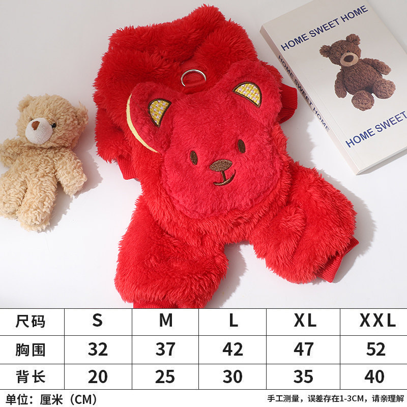 狗狗衣服泰迪幼犬冬季可牵引保暖加绒四腿棉服宠物冬天加厚绒冬装