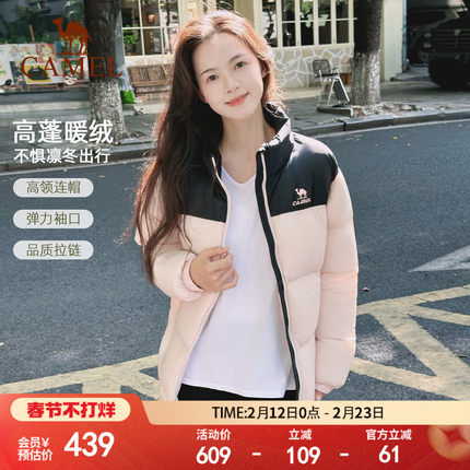 火炉骆驼羽绒服女新款秋冬季加绒保暖防泼水连帽运动外套面包服男