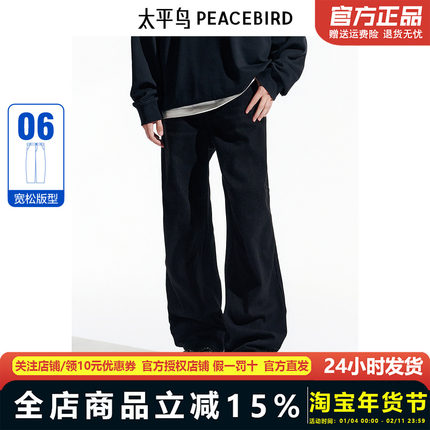 【商场同款】太平鸟男装 2024年冬季黑色宽松牛仔裤B1HAE410B