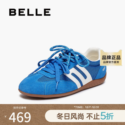 百丽跑道休闲运动赛车鞋女2025秋新复古撞色内增高德训鞋B2816CM5