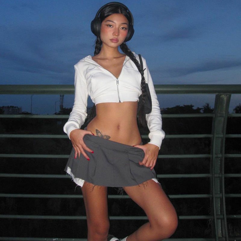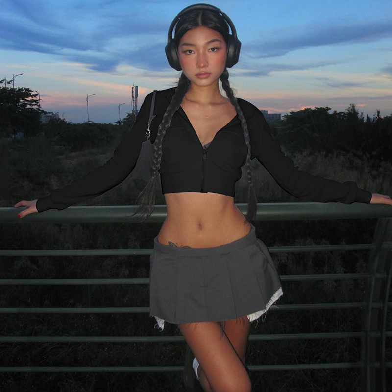 gusty美式辣妹ins风连帽拉链露脐卫衣外套女休闲百搭收腰短上衣潮