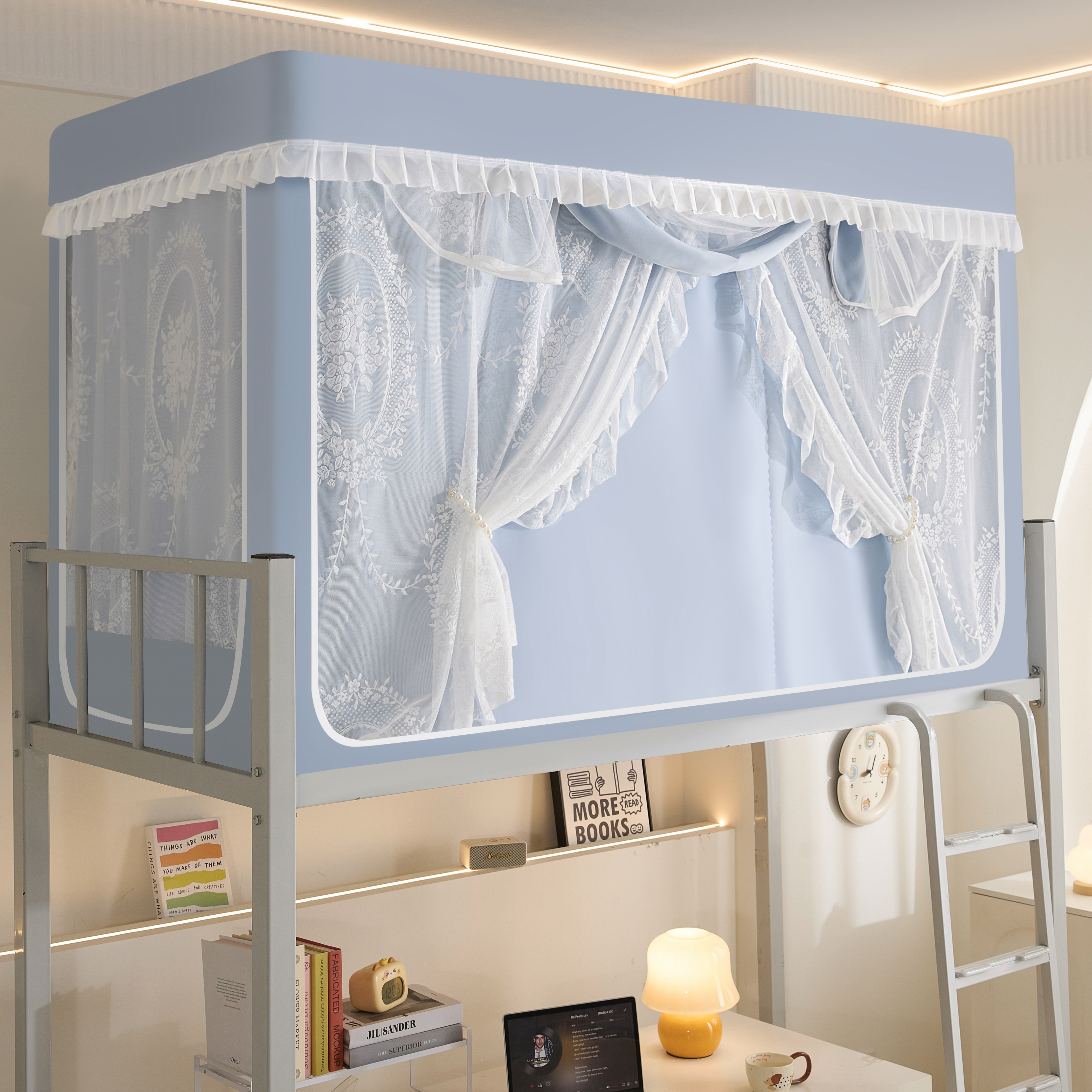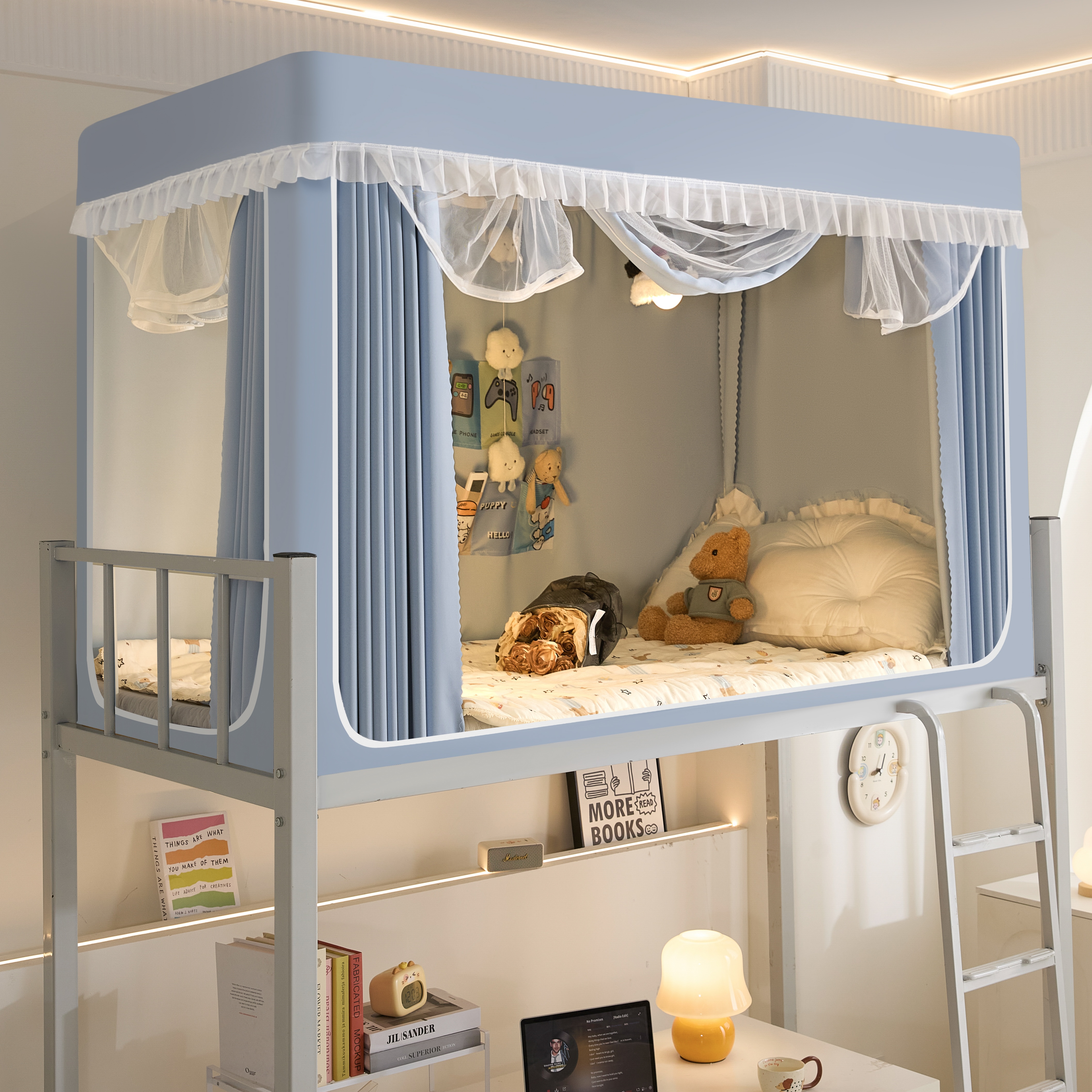 无涂层梭织布全包强遮光大学生宿舍蚊帐床帘免安装一体式支架上铺