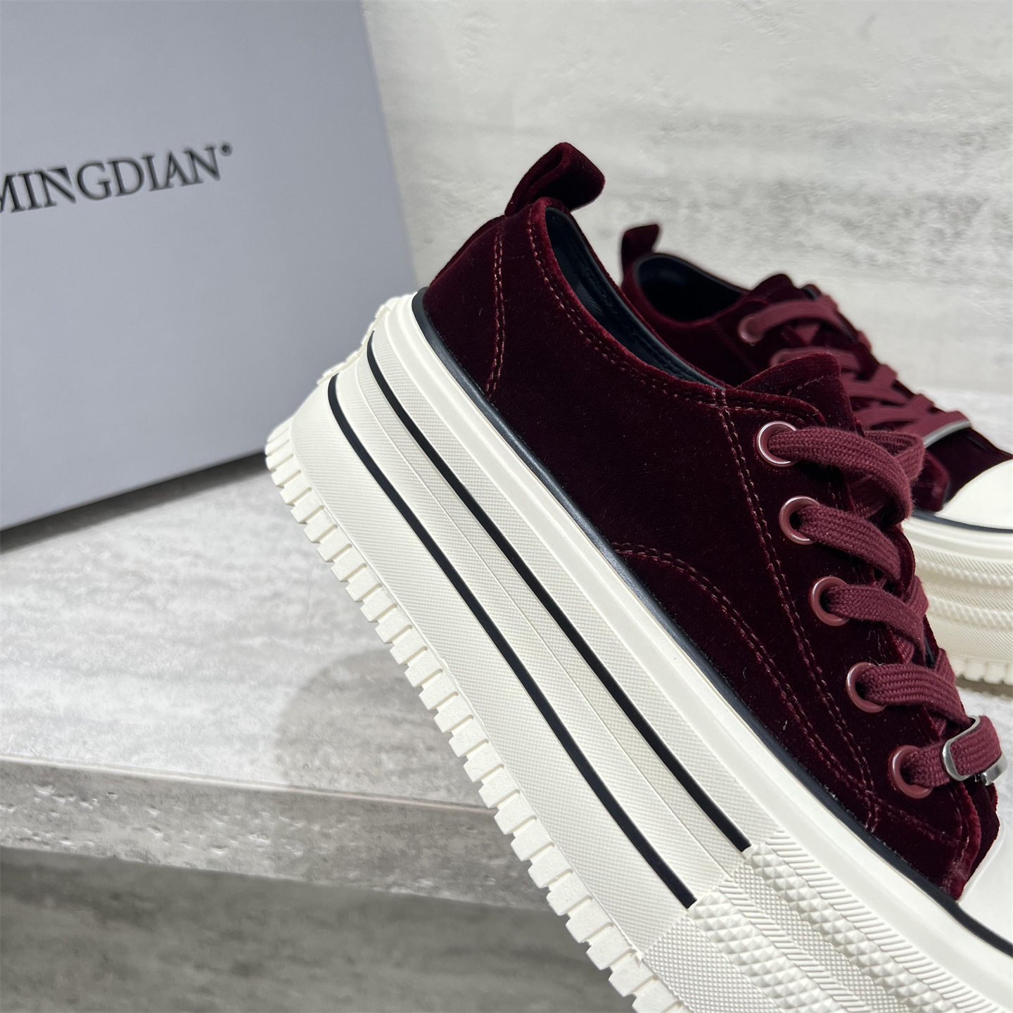 真皮厚底丝绒面饼干鞋休闲板鞋潮