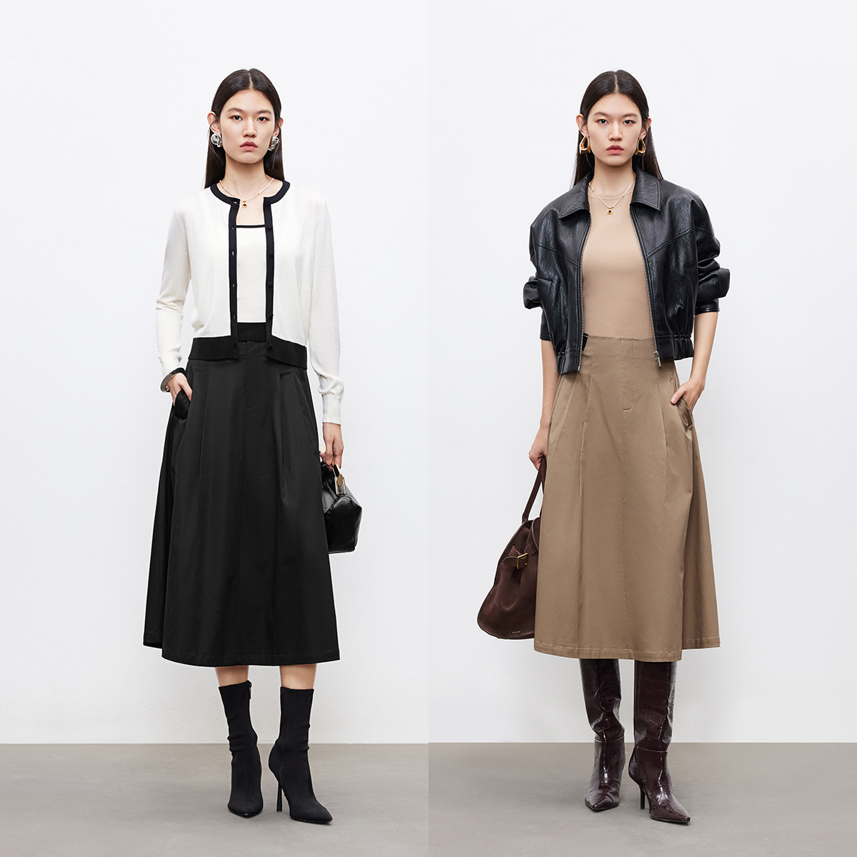 Vero Moda半身裙2025冬新款含莱赛尔棉松紧腰头A字裙325316034