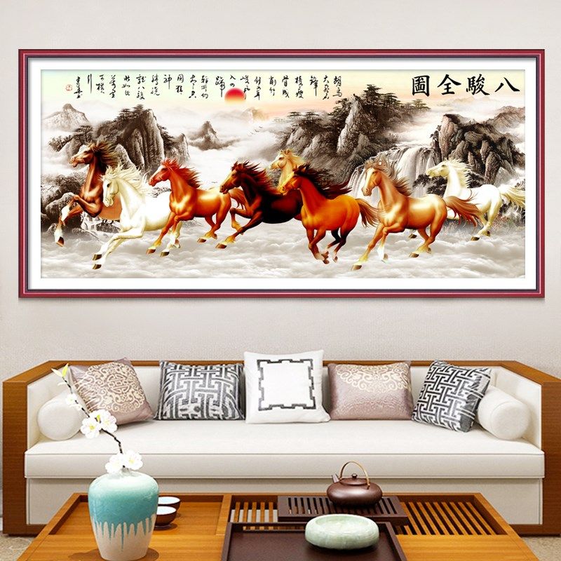 八骏图新品十字绣2025新款客厅高级大气山水画马到成功八匹马刺绣