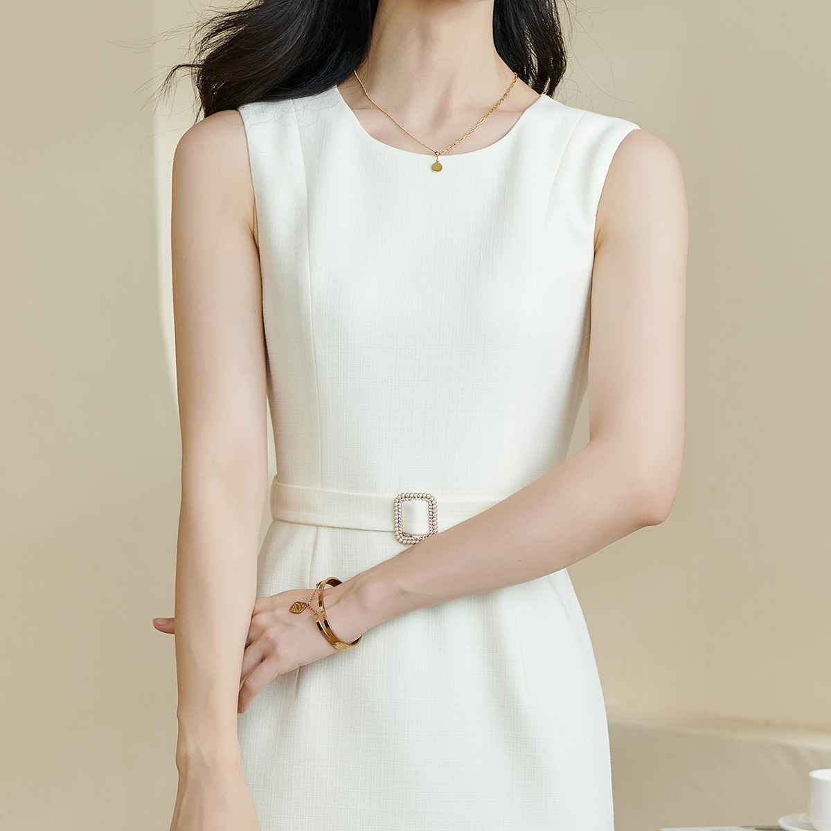 米思阳2025秋季新款气质白色打底裙子小香风内搭无袖背心连衣裙女