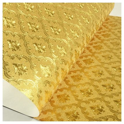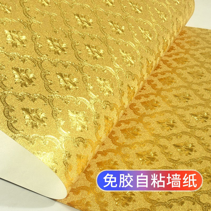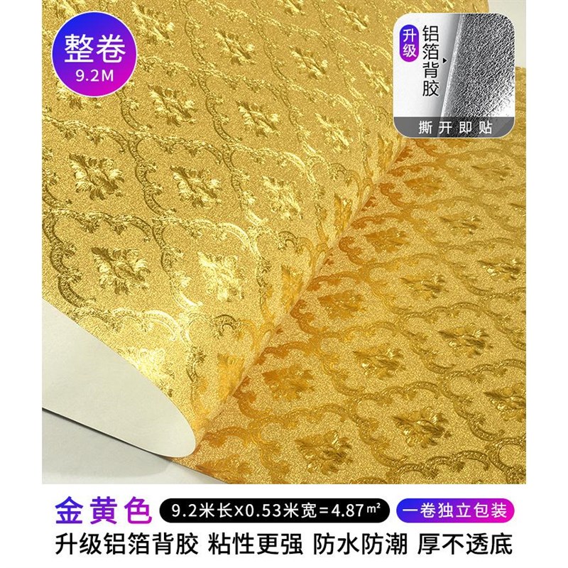 自粘金泊纸金黄色金箔墙纸闪光奢华反光欧式小花酒吧KTV背景壁纸