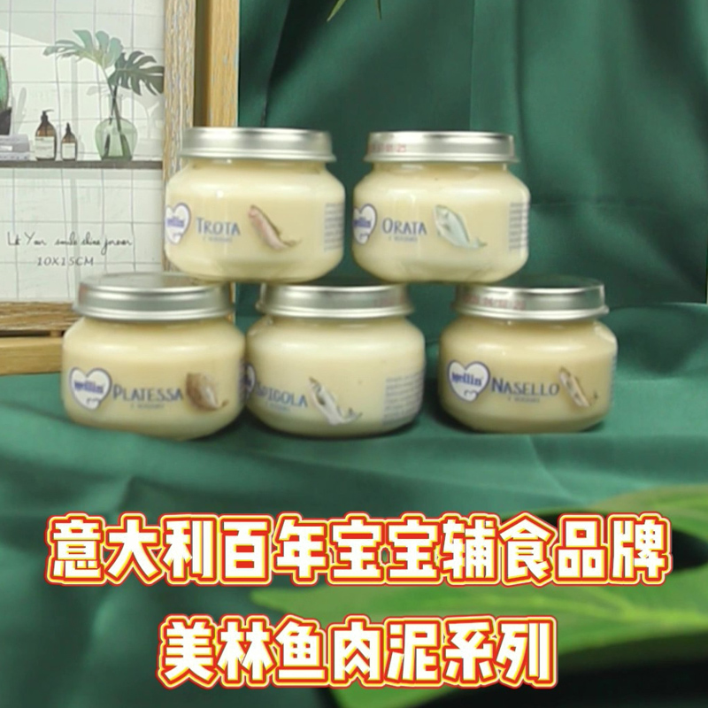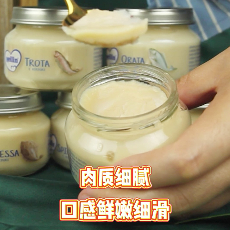 意大利美林MELLIN6个月宝宝三文鱼比目鱼鳟鳕鱼肉营养辅食肉泥6瓶
