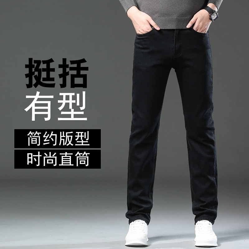 春秋季黑色牛仔裤男款爆款2025新款弹力宽松直筒休闲裤子男士长裤