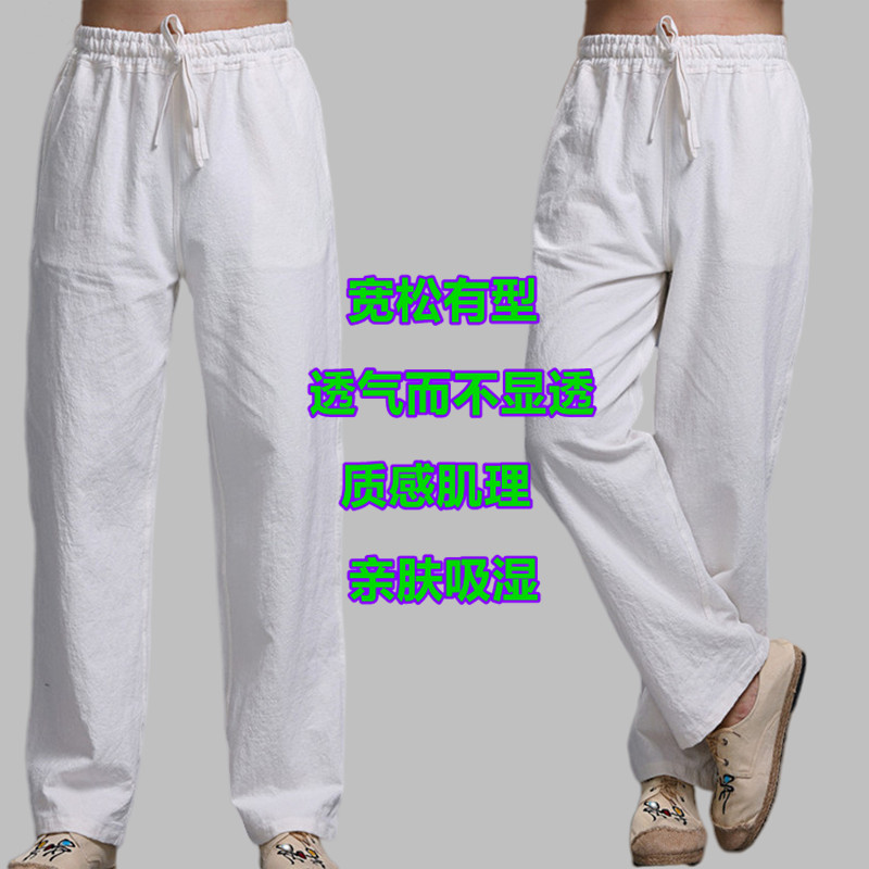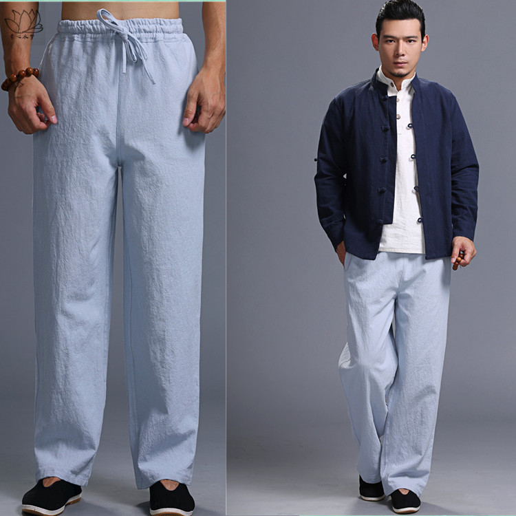 春夏季休闲款民族风男式棉麻宽松直筒长裤子中国风复古文艺禅服装