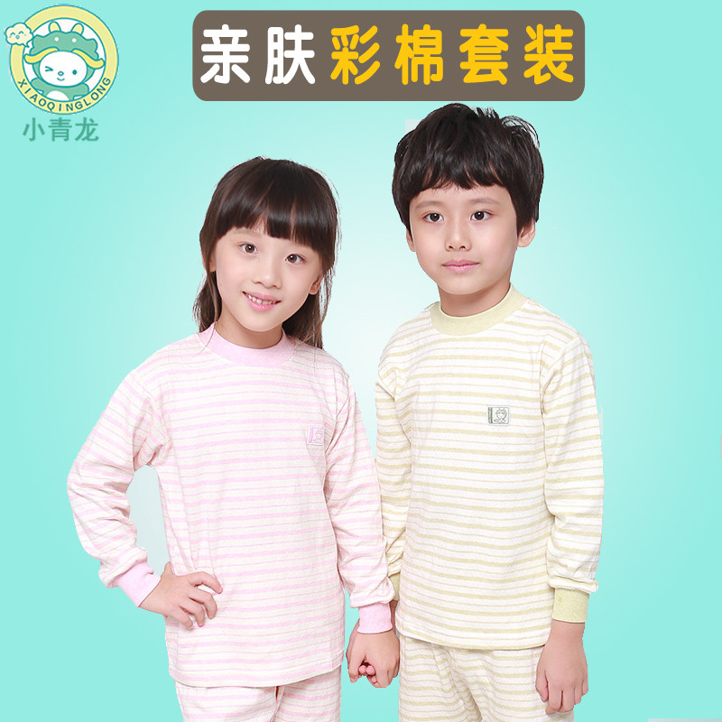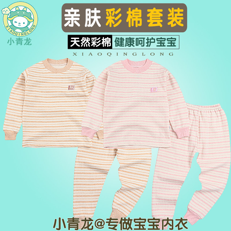 小青龙彩棉纯棉加厚儿童保暖内衣套装婴儿中大童睡衣男童女童睡裤