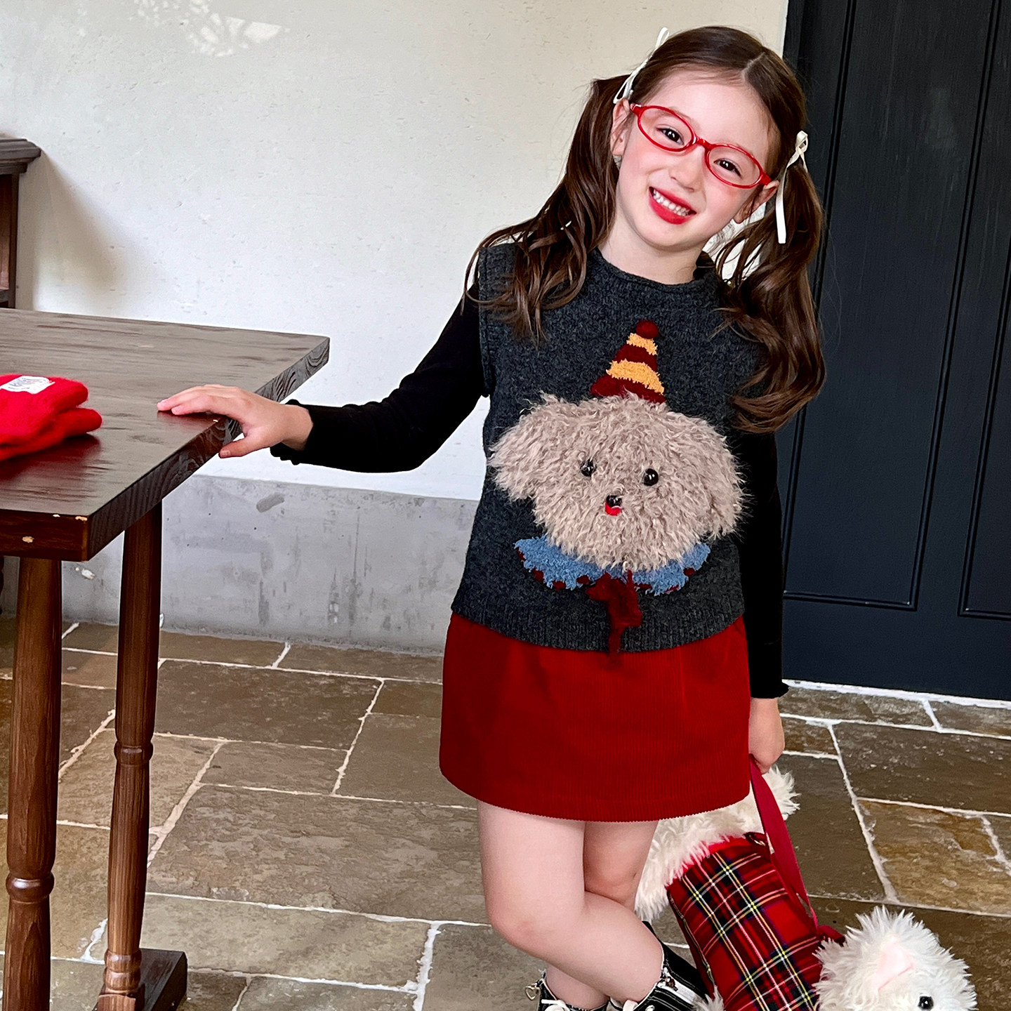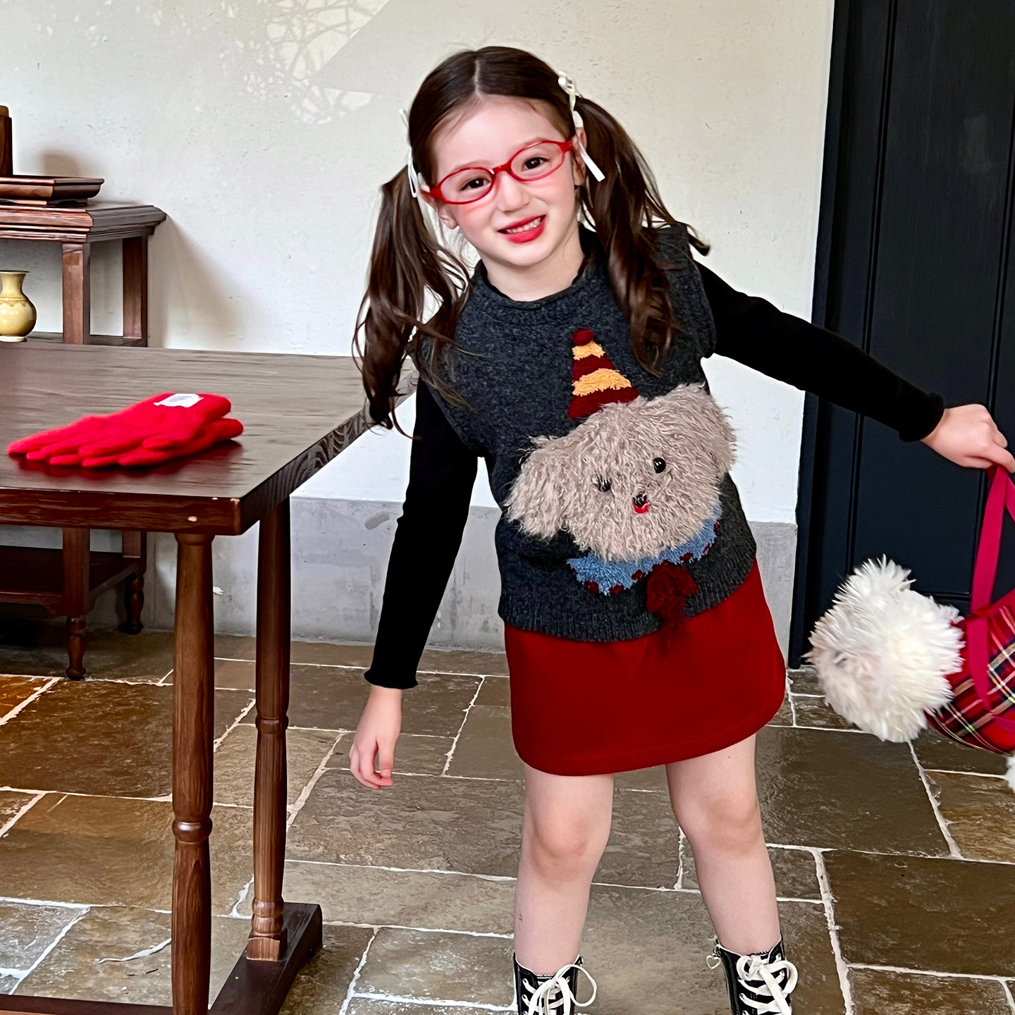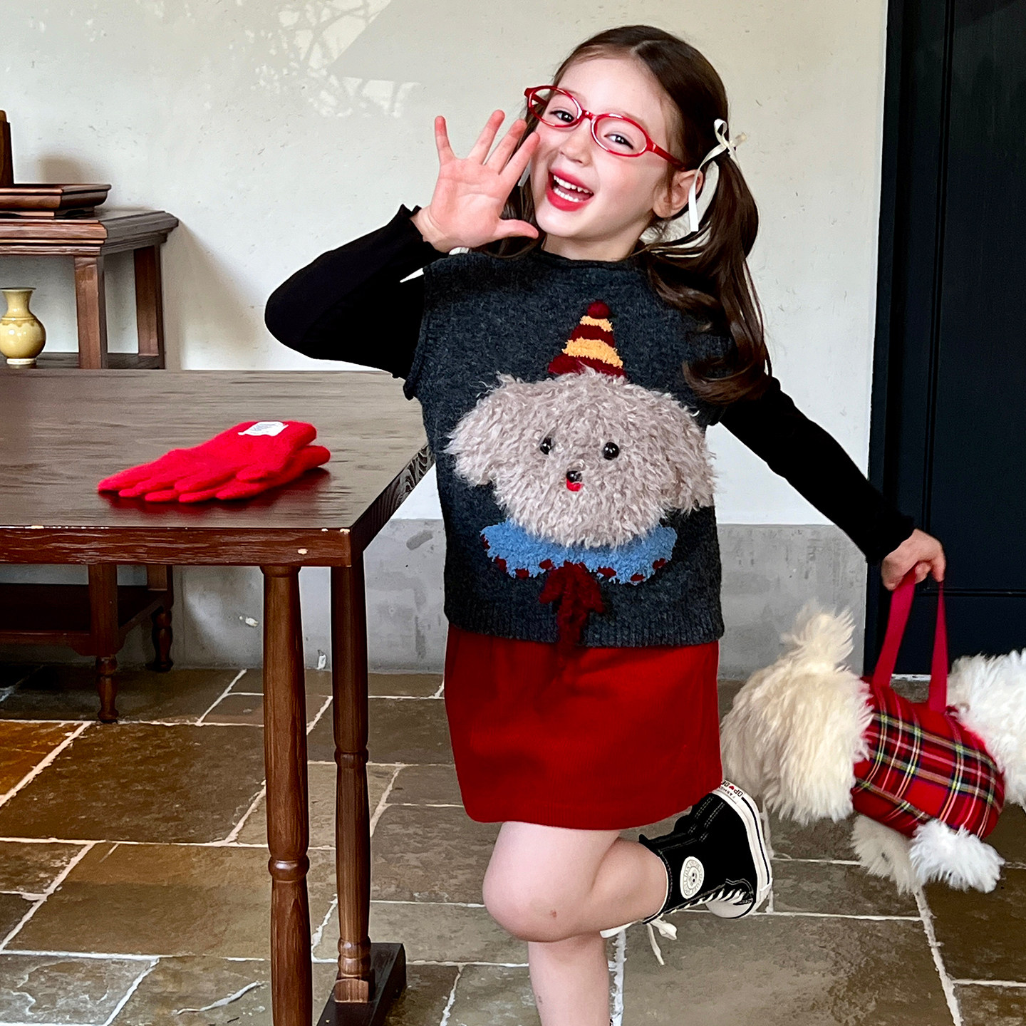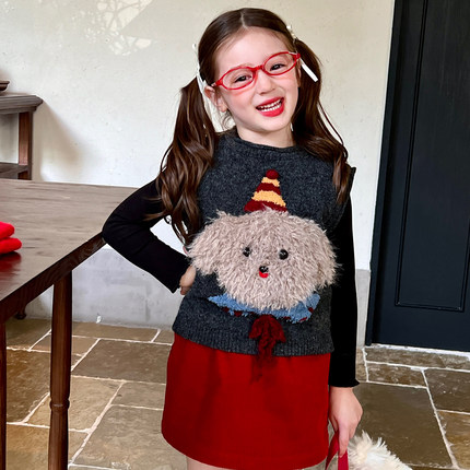 栀了成长记女童装立体小狗针织马甲秋季新款儿童女宝休闲毛衣背心