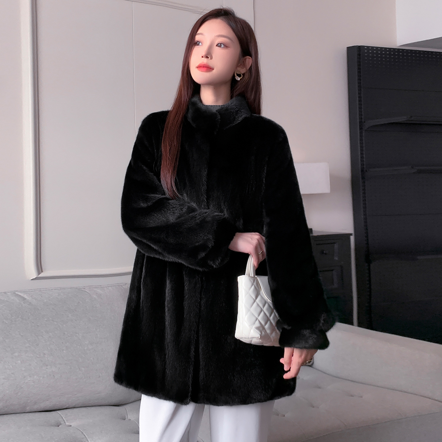 2025新款貂皮大衣女整貂母貂全抽刀立领中长款进口水貂帽皮草外套